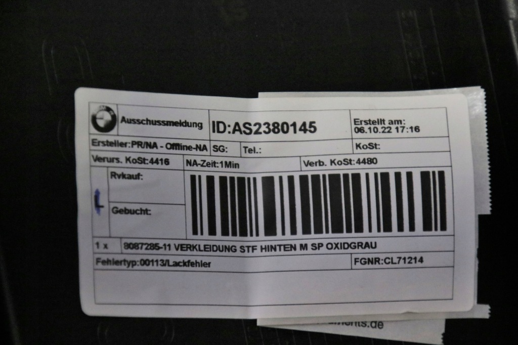 | Calidad de las piezas (según GVO) | O - original con el logo del fabricante del vehículo (OE) |