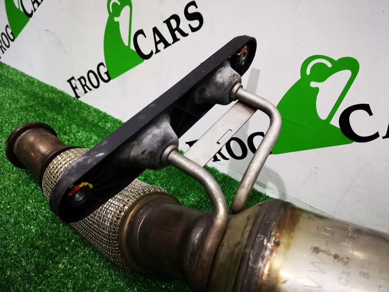 Catalizador con tubo de escape, aleta de escape y elementos de fijación visibles en las fotos