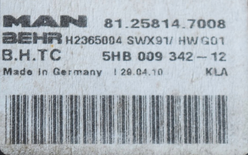 Controlador de calefacción de BEHR para camiones MAN.