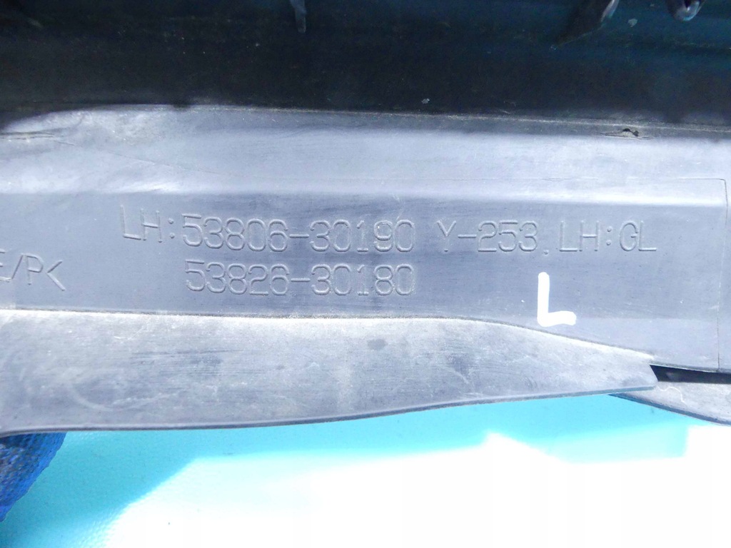 Marca Modelo: Lexus GS IV 11-20 Número VIN del vehículo: JTHBS1BL105005760 Man. Vehículo 2013 Descripción del vehículo: 3.5 híbrido 292KM sedán 4d caja de cambios climatizador automático versión europea Información adicional: 53806-30190 / tapa guardabarros izquierdo