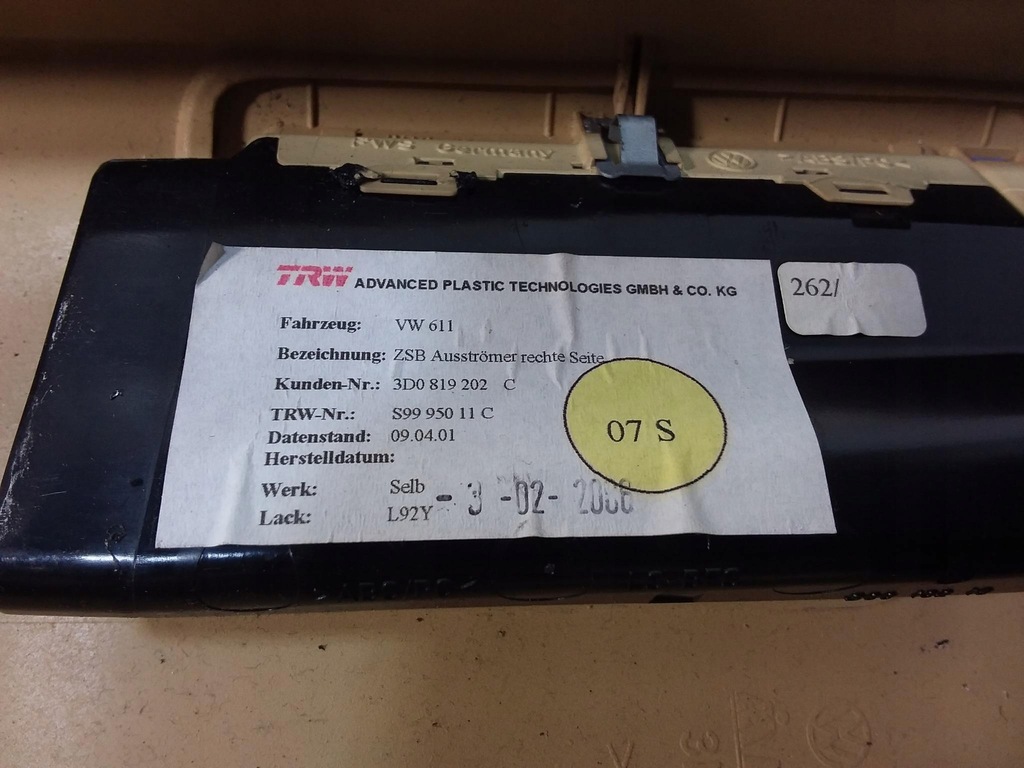 Descripción: color beige, con rejilla de ventilación, signos visibles de uso, elementos de fijación dañados - calidad B && CUBIERTA PARA POSTE B DERECHO VW PHAETON 3D5867292N