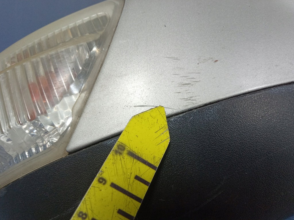 Descripción: eléctrico, 6 pines, con luz intermitente, color Stardust Silver, rayones, restos de reparación anterior, fisura visible en las fotos, tapa intermitente mate, -calidad B && GALAXY MK2 ESPEJO DERECHO 6 PIN STARDUST SILVER EU