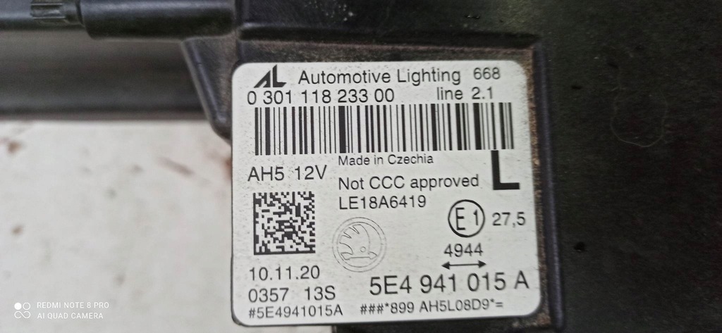 | Número de pieza | LÁMPARA OCTAVIA IV DELANTERA IZQUIERDA FULL LED 5E4941015A EU 992941572CD |