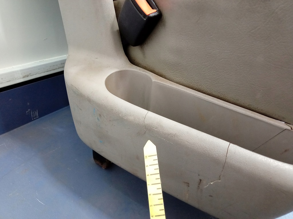 Descripción: sofá de tela, gris, plegable, con reposabrazos y cinturón lumbar, signos visibles de uso, abrasiones, suciedad, compartimento lateral roto, - calidad B && VW CARAVELLE T4 ASIENTO TRASERO, 2ª FILA, DOBLE