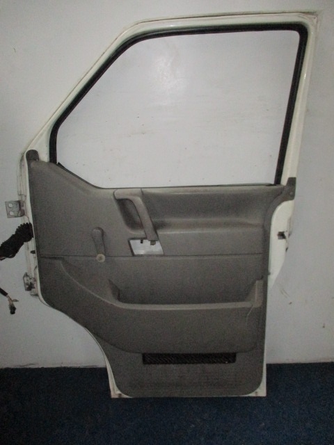Descripción: Versión europea, blanca, con chapa, con elevalunas manual, sin cerradura regular con actuador de cierre centralizado, 1 pequeña abolladura, ligeramente doblada en la esquina inferior (T4,2.5TDi, 10V, 75kW, 102KM, ABS, aire acondicionado, monovolumen, código de motor ACV, código de color R910) -calidad B && VW TRANSPORTER T4 AUTOBÚS DELANTERO DERECHO R910